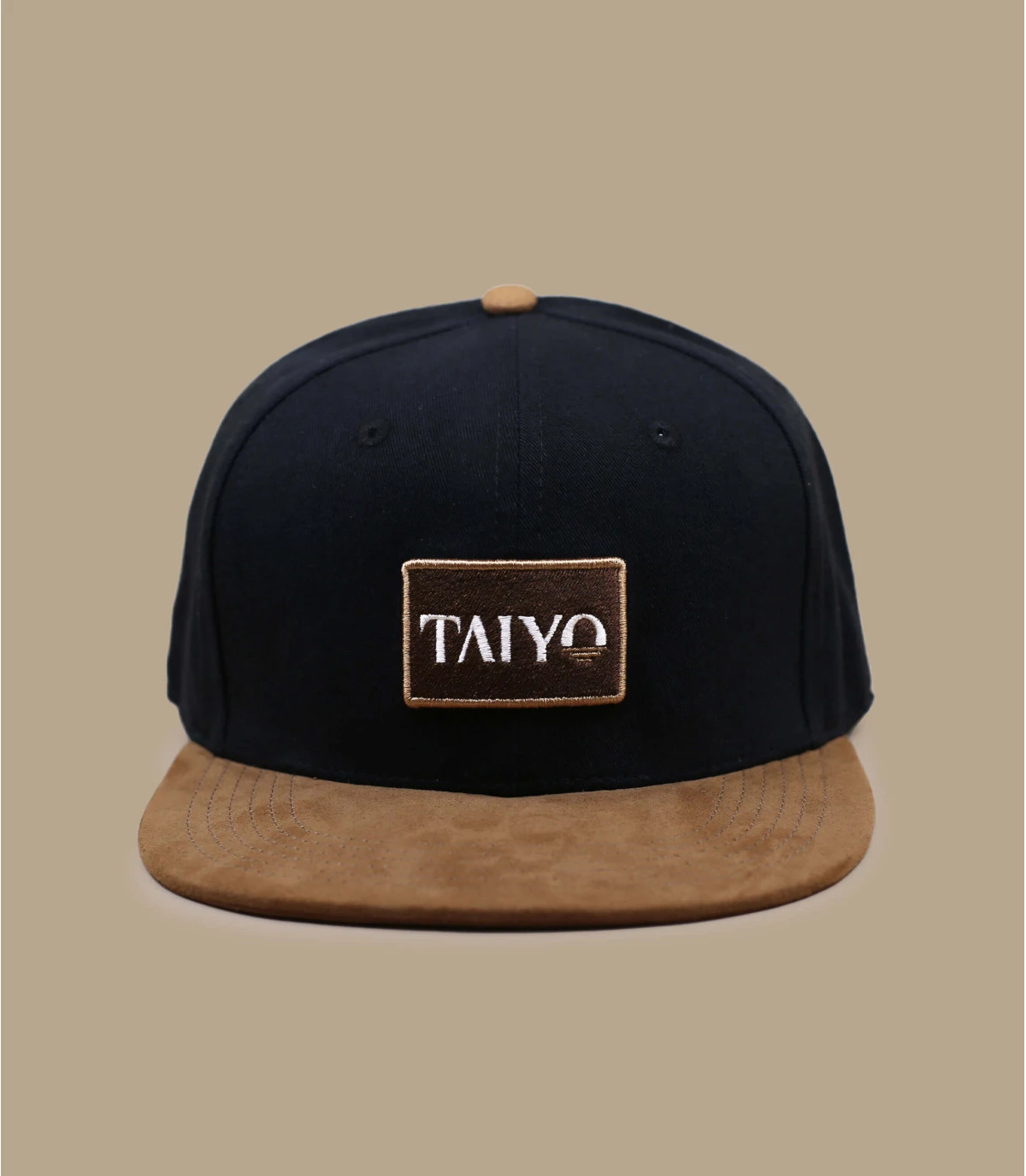 Vous allez apprécier porter cette casquette snapback noire éco-conçue. Elle arbore un broderie Taiyo à l’avant avec une visière suede marron. Elle est faite en coton organique et à partir de matériaux recyclés pour une mode plus respectueuse.