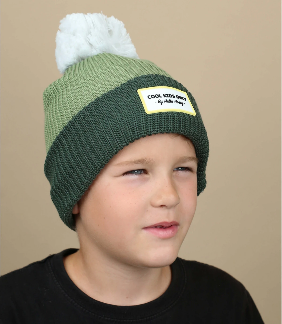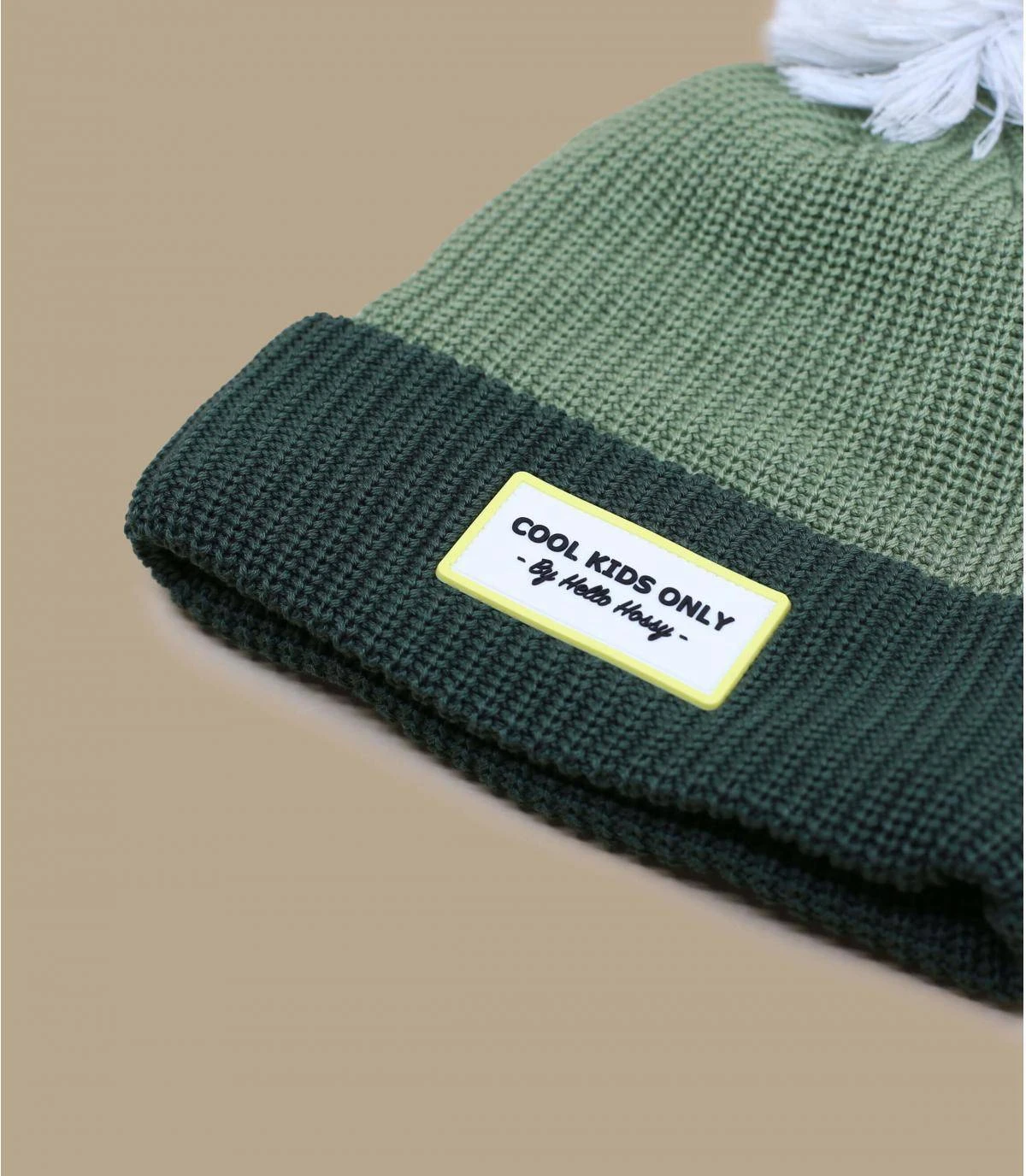 La jeune marque Hello Hossy nous propose un bonnet aussi pratique que joli avec ce modèle dans des tons vert complété d’un pompon et d’une étiquette tissée rigolote. Il est doublé de polaire chaude et douce.