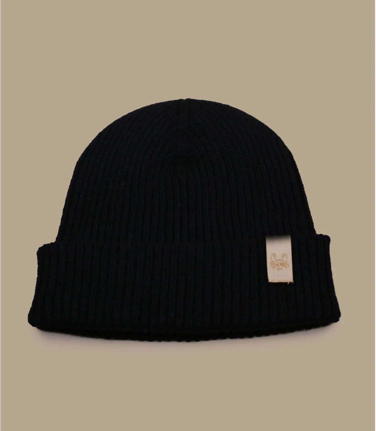 Bonnet en laine fabriqué en France dans la région Rhone Alpes et personnalisé dans notre Atelier d’Annecy, à partir de matières recyclées. Crabe pirate gravé sur patch beige.