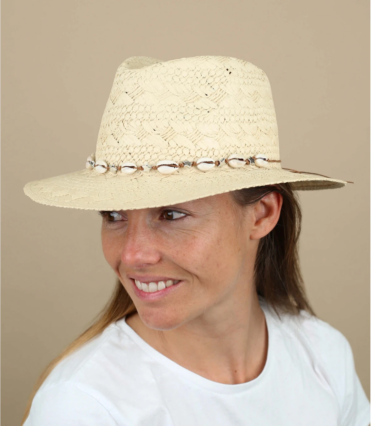 Porté à la plage, en soirée ou pour un verre en amoureux, ce chapeau fedora en paille fera son petit effet. Fabriqué en Italie, son tressage en grosses mailles est élégant. Il est décoré d’une lanière et de perles.