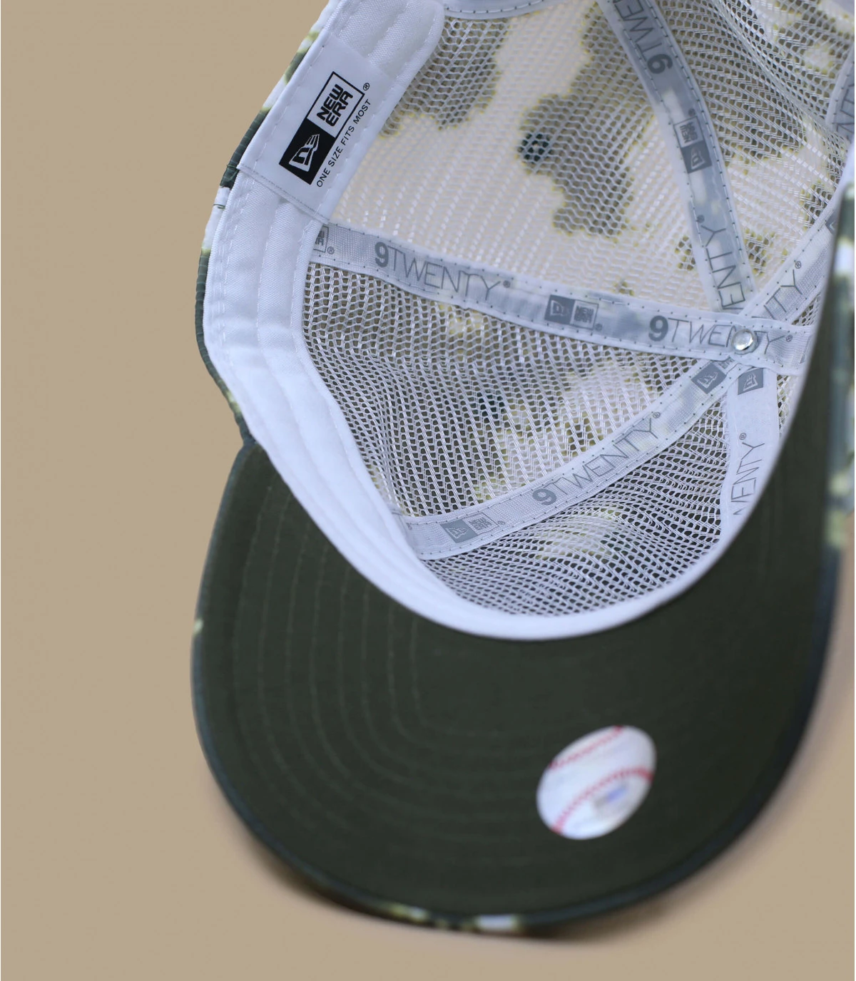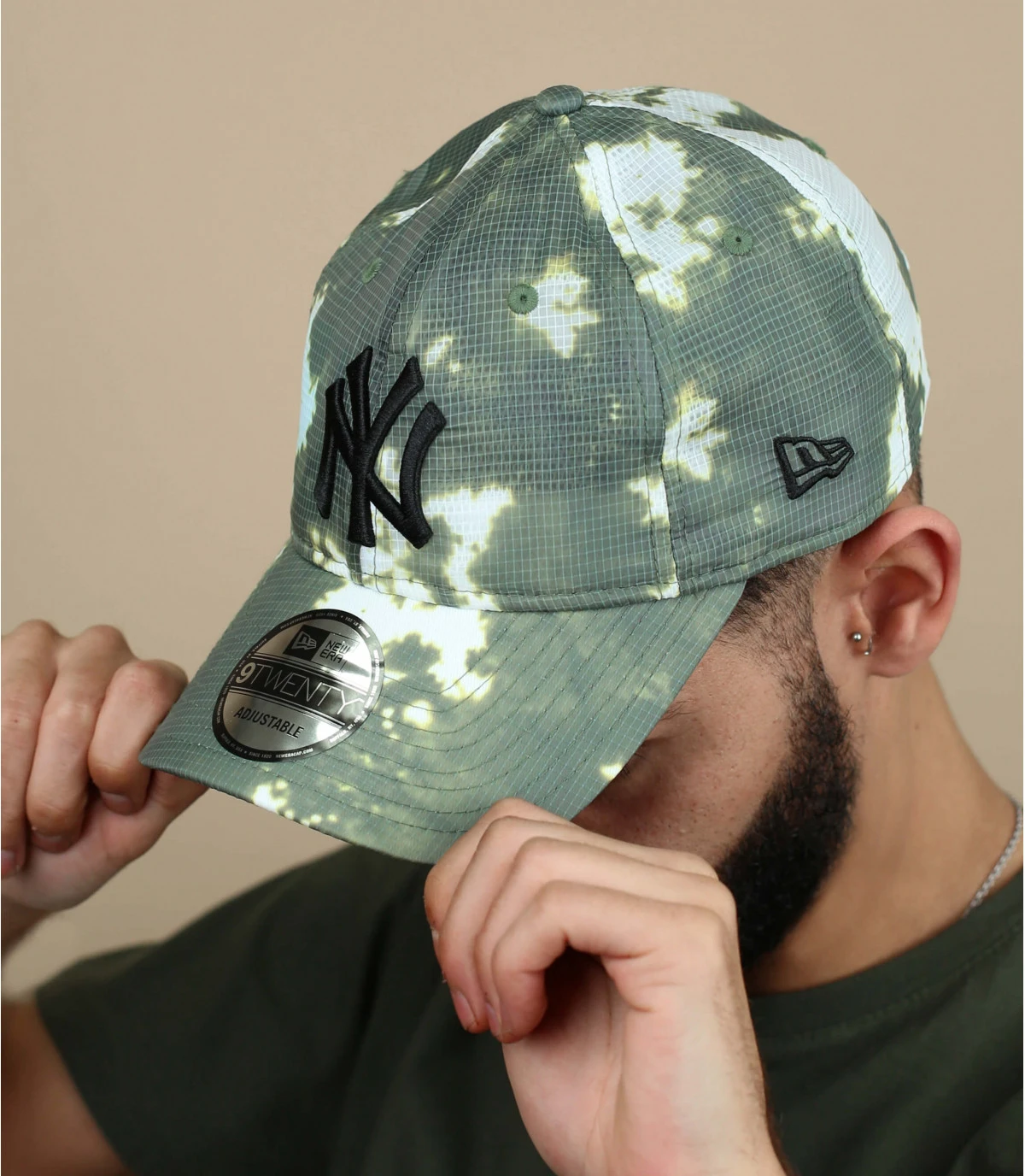 Soutenez les Yankees en portant un classique de New Era avec les initiales New York noires sur l’avant, revisité avec un imprimé dans les tons olive. Le drapeau de New Era est visible sur le côté gauche.