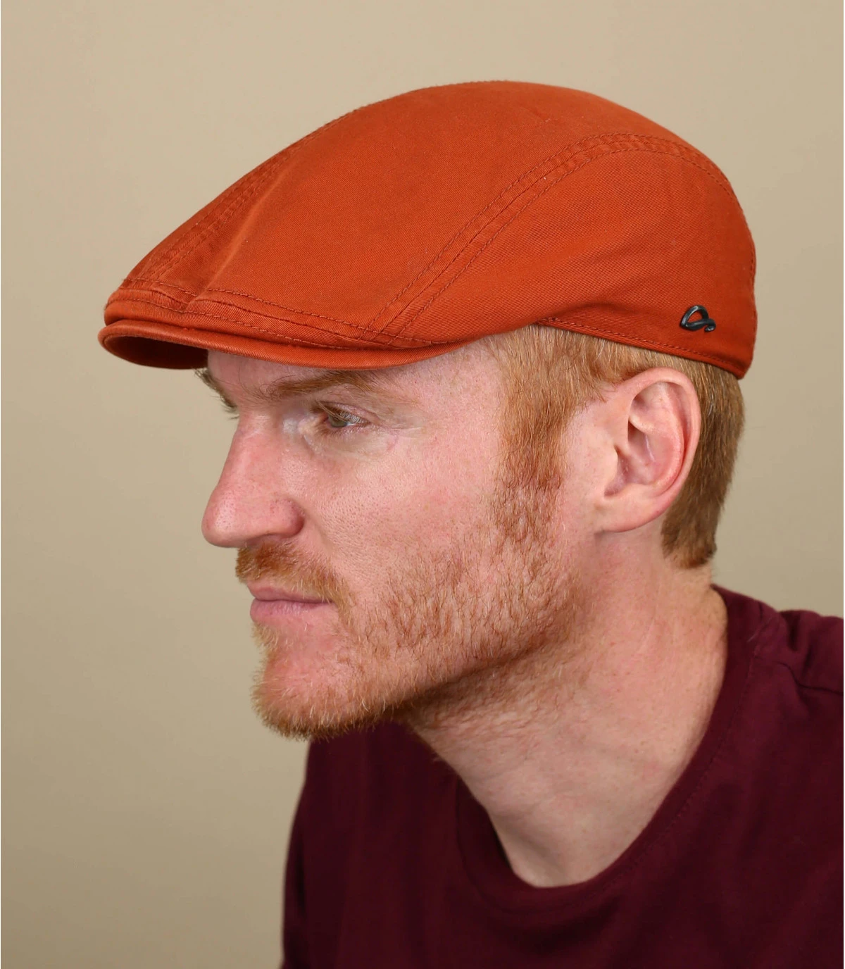Porter une casquette plate comme les vrais gentlemen cet été ! Ce modèle en coton de coloris rouille vous distingue du lot et fera un maximum d’effet. Il est confortable à porter et léger, son aspect est lisse et sans défauts.