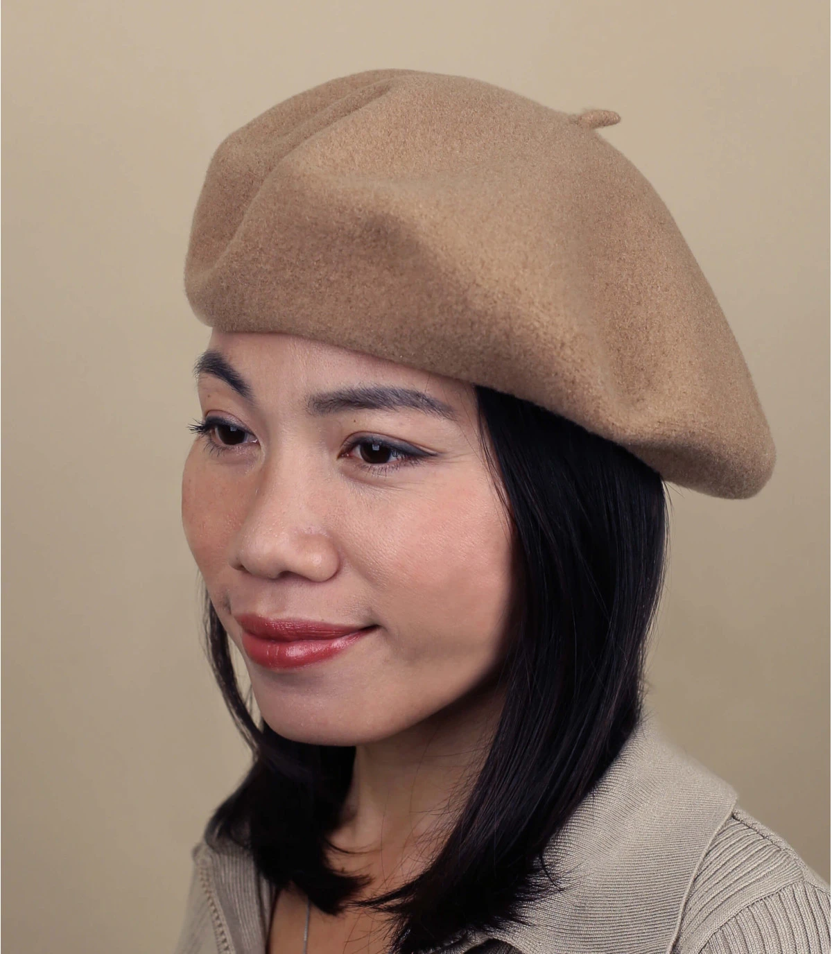 Un coloris tendance camel pour un béret exceptionnel ! Ce béret basque est en laine mérinos, filée et teintée tout près des Pyrénées.