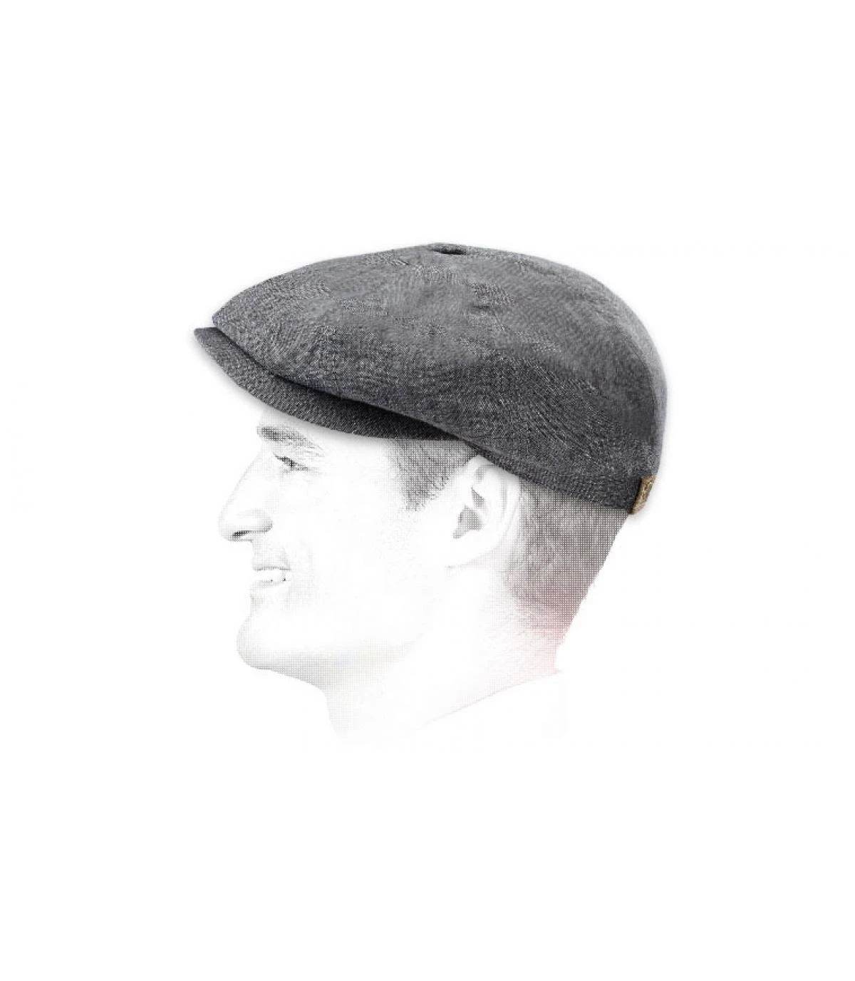 Casquette Stetson hatteras 100% lin uni denim. Visière courbée, logo Stetson à l’arrière de la casquette.