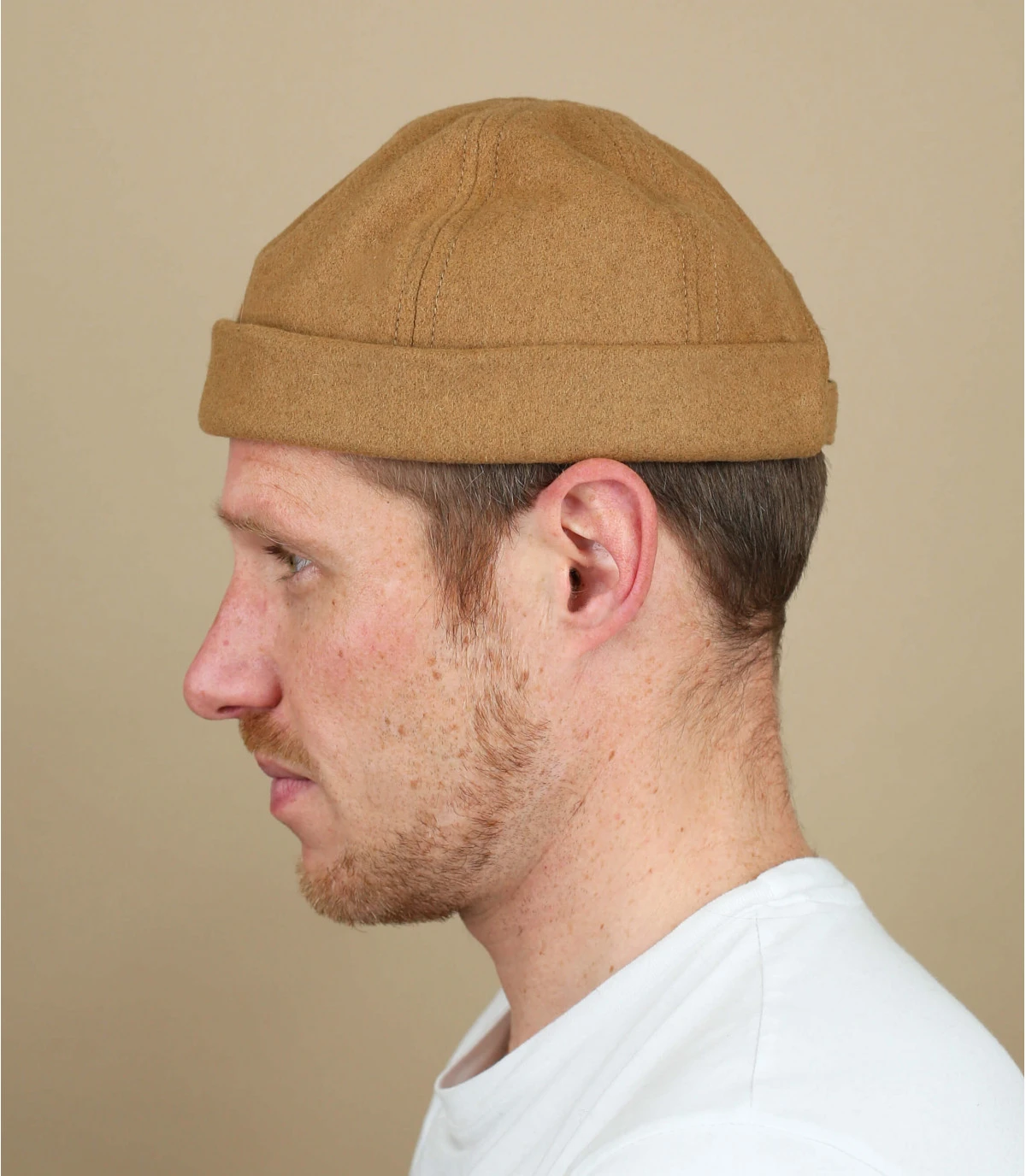 Démarquez-vous par votre style, avec ce superbe bonnet docker confectionné en France dans une belle matière en laine mélangée beige. Idéal assorti à des bottes du même ton, il vous maintiendra confortablement au chaud.